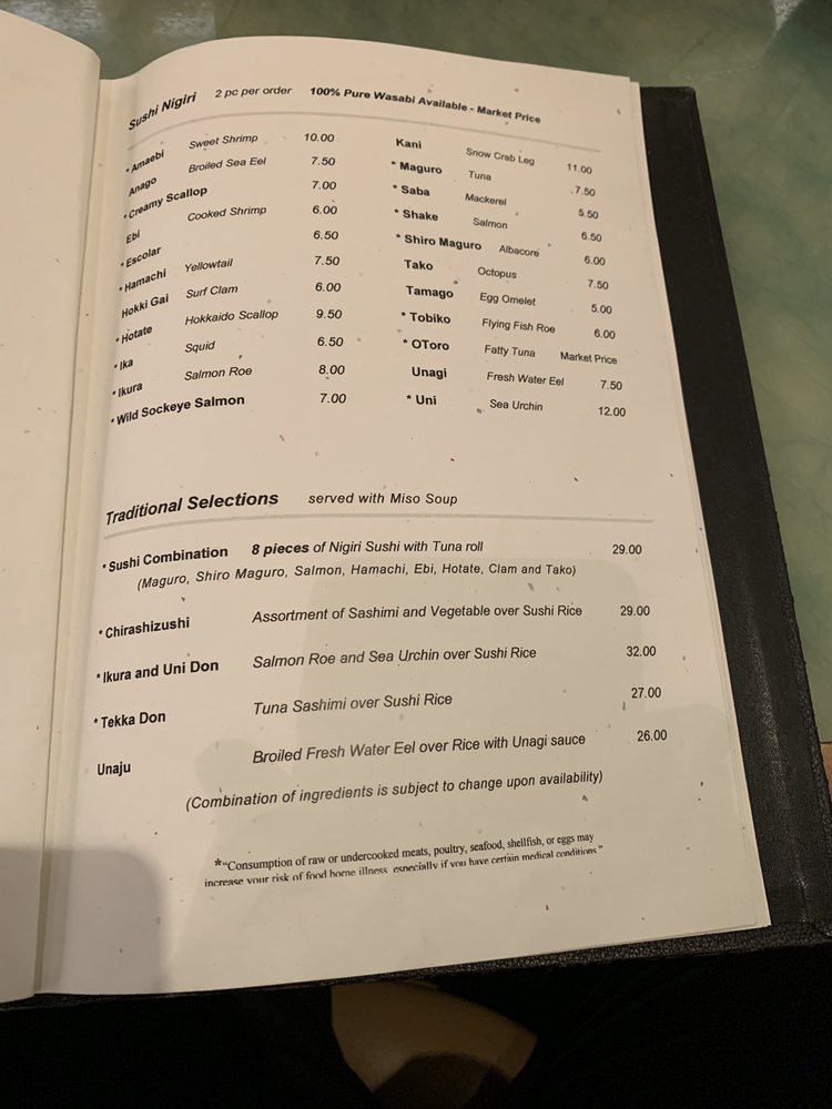 Bluefin Tuna, Fresh Salmon Nigiri, Wildsockeye Salmon Nigiri, Yellowtail Nigiri, toro sashimi, pc yellowtail roll, tuna poke